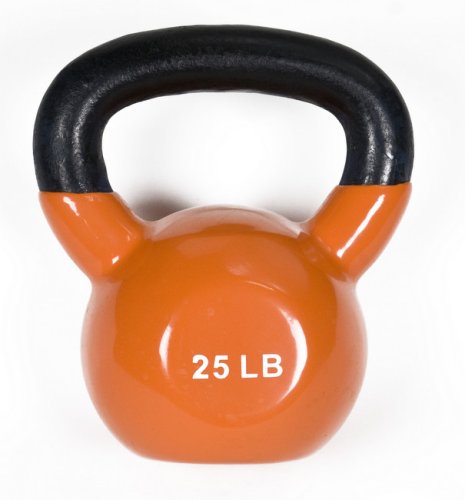 Cast iron bell is encased in vinyl to help reduce noise and prevent damage to floors. Smooth, solid steel handle for comfortable grip. Handle measures 1" diam. on all kettlebells. Color coded by weight; colors may vary. For indoor use only.